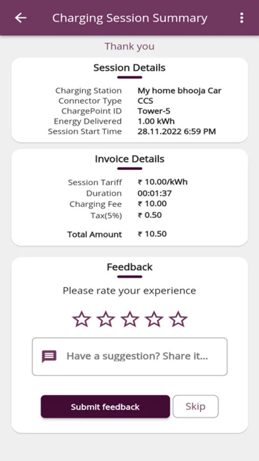 • You can see all the information of historical transactions in the app, which provides details of money spent at which charging station and when.