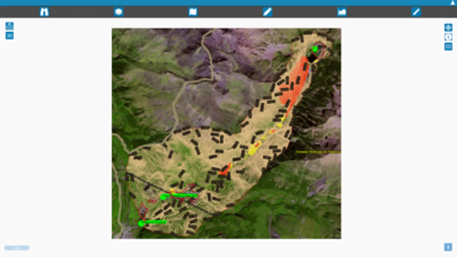 Aplicación de difusión de la Cartografía de Riesgos Naturales: Montaña Pirenaica. Proyecto POCTEFA-ALERT. Permite la búsqueda, visualización, medición de distancias, áreas y perfiles, dibujado y descarga de información geográfica de riesgos naturales asociados a la montaña pirenaica.