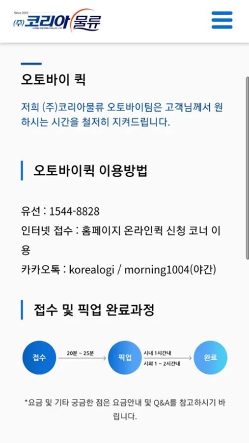 코리아물류는 신속, 정확, 친절을 기본으로 하는 업체입니다.