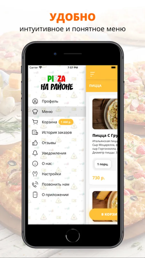 Воспользуйтесь удобным приложением для заказа еды от службы доставки «Пицца на районе».