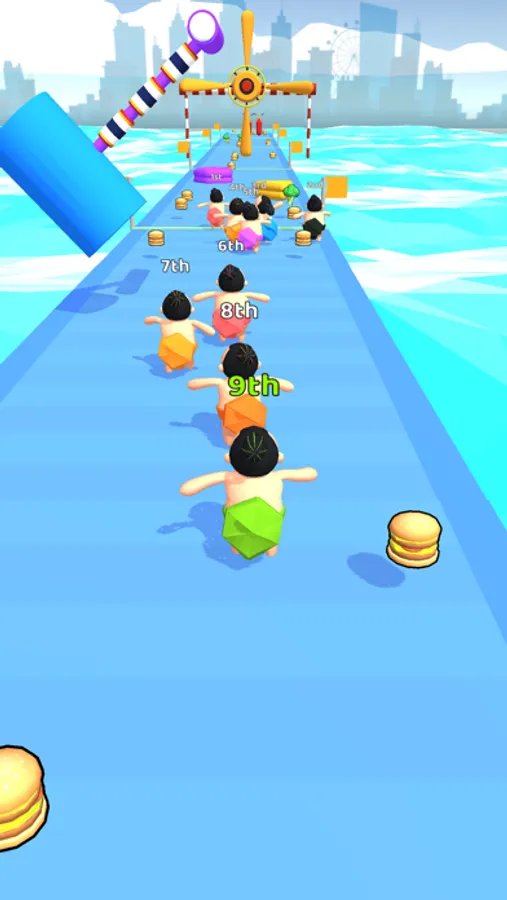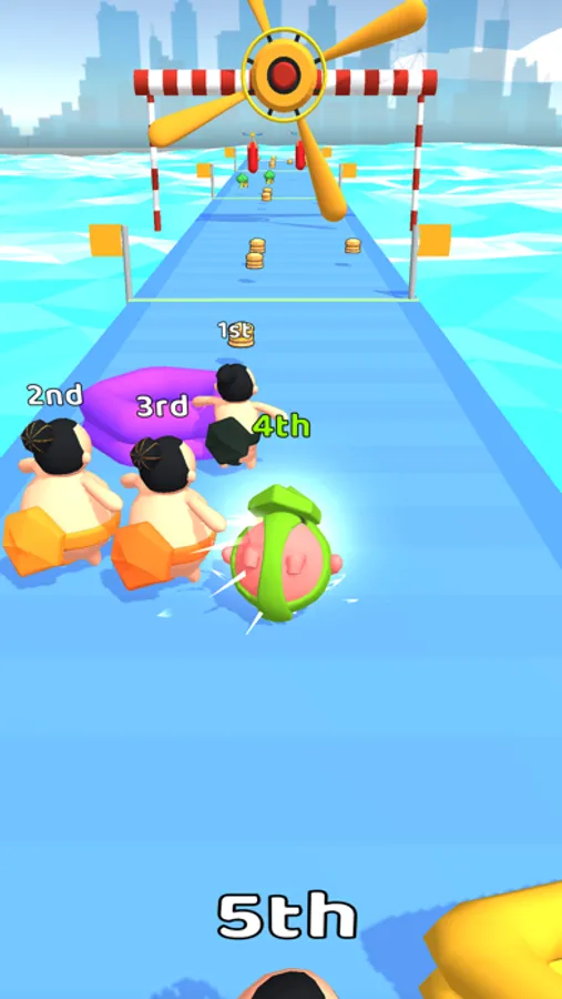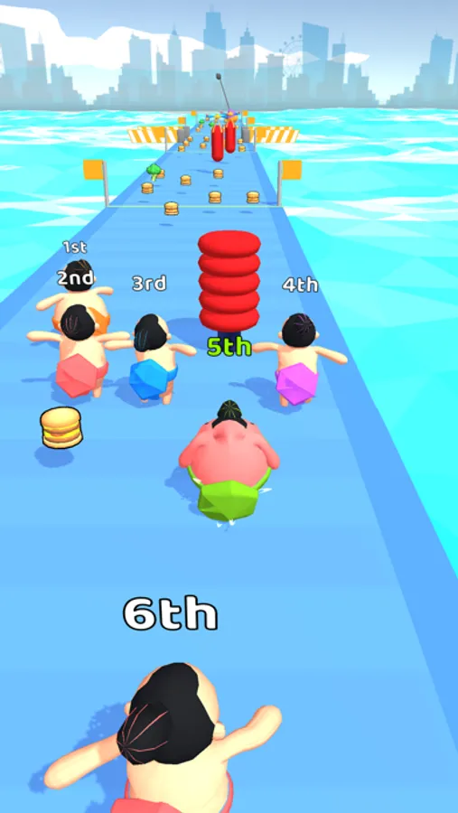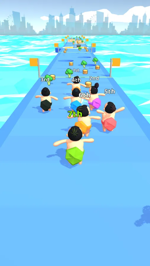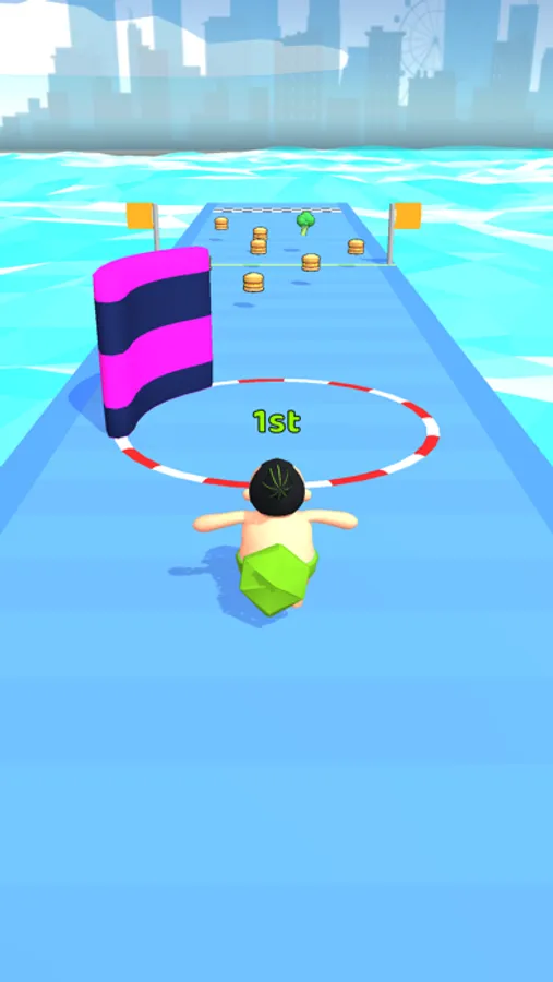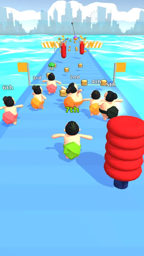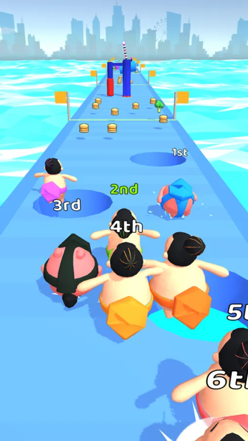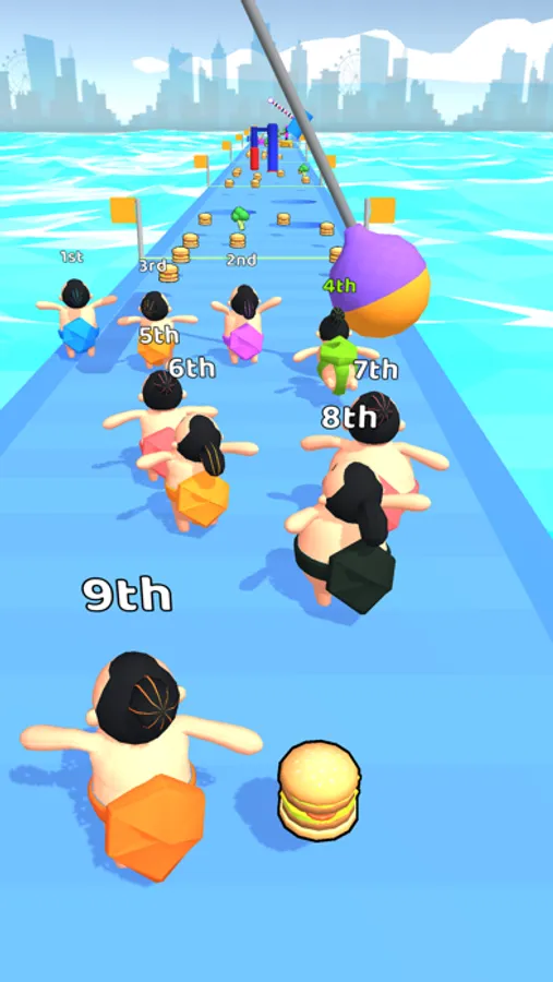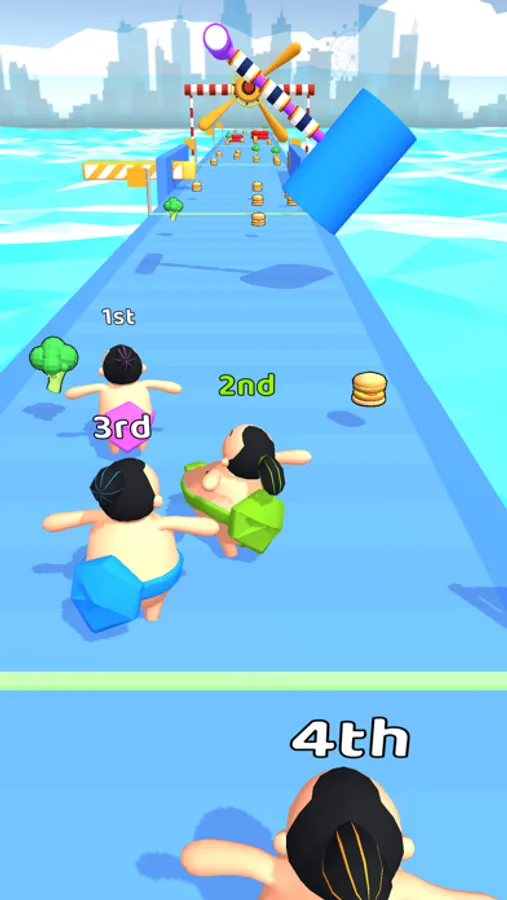 Swipe your finger to move your wrestler and collect foods. Eat all foods to get bigger and stronger. Then knock your opponents out of the platform and win the race!