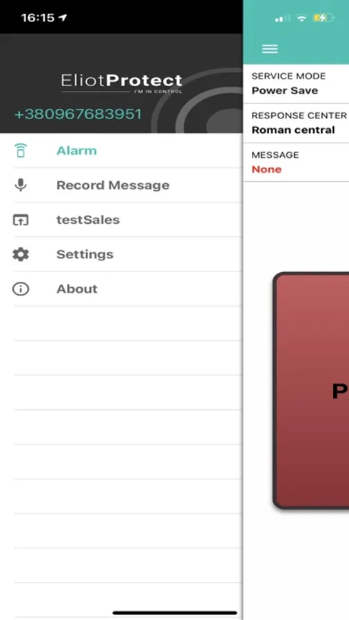 Alarms are activated from the lock screen where you hold down the round alarm button for two seconds or with the alarm button inside the app. There is also an external alarm button (Safeclick) that is connected to the phone. In the event of an alarm, a call is started to the alarm recipient at the same time as the app sends the exact position, identity of the person who made the alarm and other status information from the phone to the receiver. The identity is linked to the action document that is registered with Eliot Protect, so that the alarm receiver gets an exact and clear picture of what has happened and clear instructions on what to do.