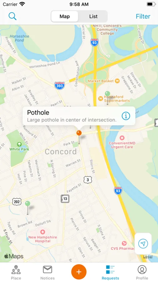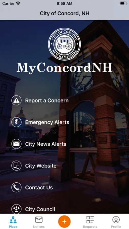 Connect with the City of Concord, New Hampshire using MyConcordNH. Reporting a concern is now easier than ever! If you see an issue (pothole, missed trash collection, illegal dumping, graffiti, damaged street sign, parking concern, snow plowing, and more), just open the app to submit a request and stay notified of the request status. This app will also quickly direct you to important City of Concord services and information.