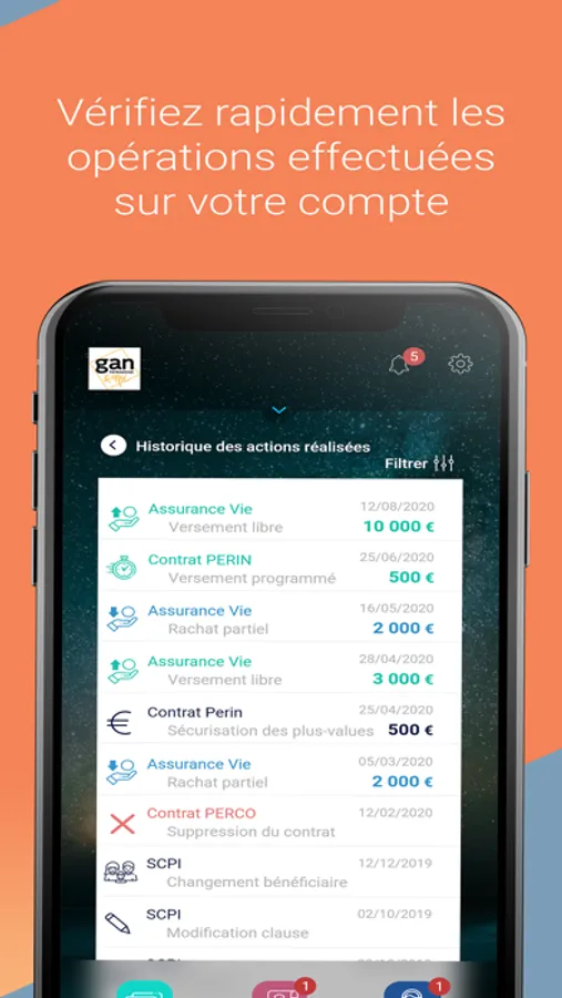 Accédez rapidement à tous vos contrats(2) et à l’historique de toutes les opérations que vous avez réalisées. Consultez l'ensemble des documents liés à vos contrats (relevés, courriers, attestations fiscales, etc.).