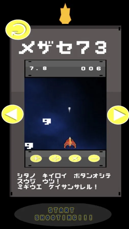・画面下の黄色いボタンを押すと、弾が発射されます。