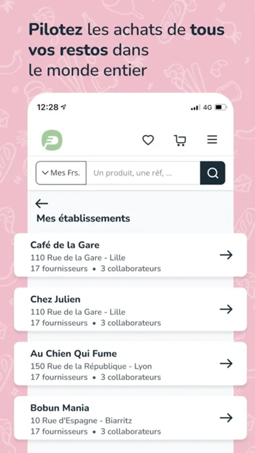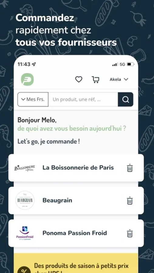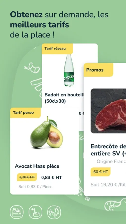 Téléchargez l’application sur tous les stores, prenez en photo vos factures. Vos fournisseurs sont intégrés sous 72 heures. Passez commande n’importe où et n’importe quand !
