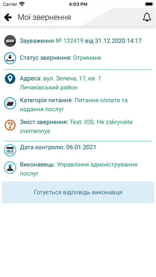 - слідкувати за ходом розгляду та опрацювання звернення;