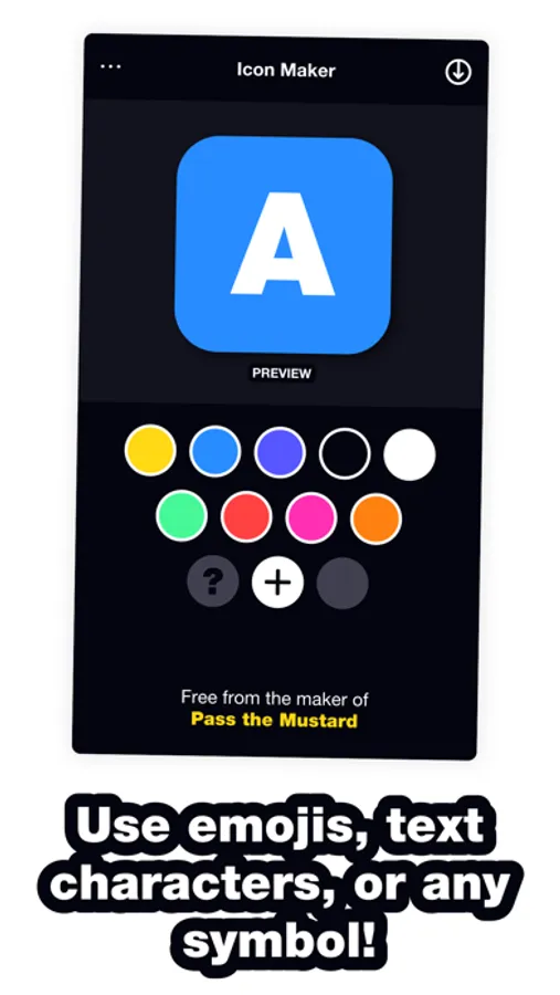 Emoji App Icon Maker makes it east to create shortcut app icons to use on the homescreen of your phone. Just pick a color and enter an emoji, text character, or symbol using your keyboard and you're ready to save to your camera roll. It's that easy!