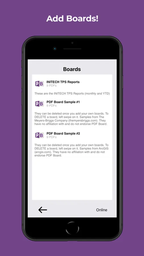 Stop using email and storage platform tools for sharing and viewing your PDF reports. With email, you have to tap or click on one report at a time. And storage app viewers, they are no better. None of them were designed for simple viewing. PDF Board allows you to create "boards" of your PDFs to group them together. When you're ready to view them, simply pick a board to view and then swipe them right and left to switch between them.