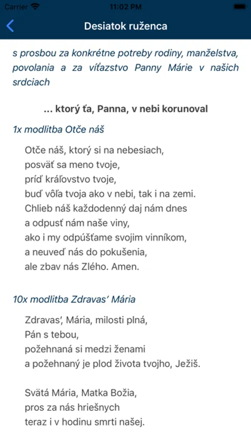 2. pomodliť sa desiatok ruženca ... ktorý ťa Panna v nebi korunoval