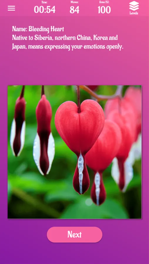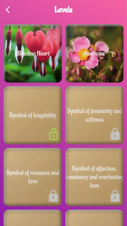 * when puzzle is solved: find the flower name and a few interesting details (for instance, what the flower symbolises)