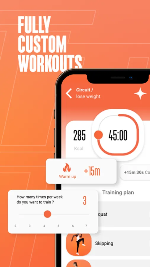 • Train this much personalized plans are adapted to your feedback after every exercise and workout you will complete.