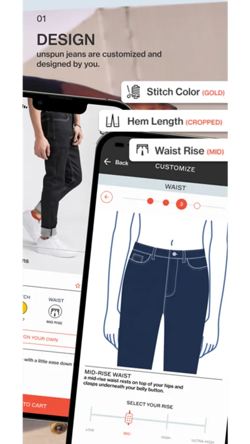Ultra-sustainable & custom-built jeans from a 3D iPhone scan, perfectly designed on your digital model. Made-to-order with sustainable denim. Customized by you. Custom built for you.