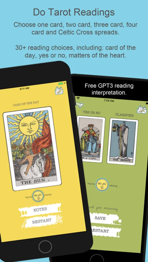 With Tarot Simple, you can also personalize your app with nine different color themes and nine original art card-backs. You can even create a vision board to MANIFEST your goals and toggle between regular and mystic soundscapes for a truly immersive experience.