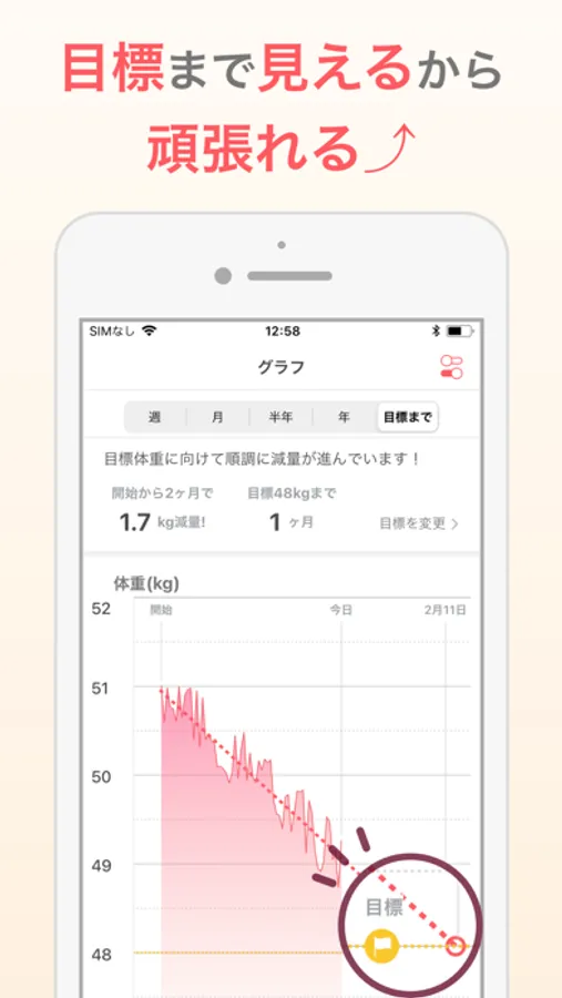 少しづつしか下がっていないダイエットでも3ヶ月後にどれくらい痩せそうかちゃんと見えるから目標に向かって頑張れます。
