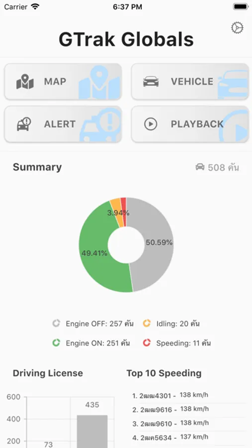 โปรแกรมสำหรับติดตามยานพาหนะ โดยแสดง ตำแหน่ง สถานะ เวลา และรายอะเอียดต่างๆของยานพาหนะ โดยจะมีหน้าเมนูใช้งานดังนี้