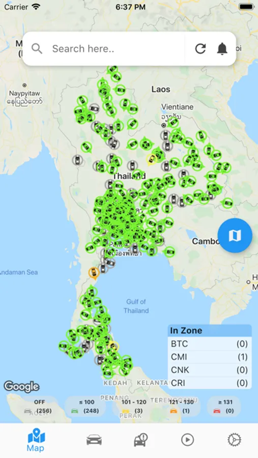 - แสดงพิกัดปัจจุบันของยานพาหนะ รวมถึงแสดงข้อมูลพื้นฐานต่างๆของยานพาหนะ