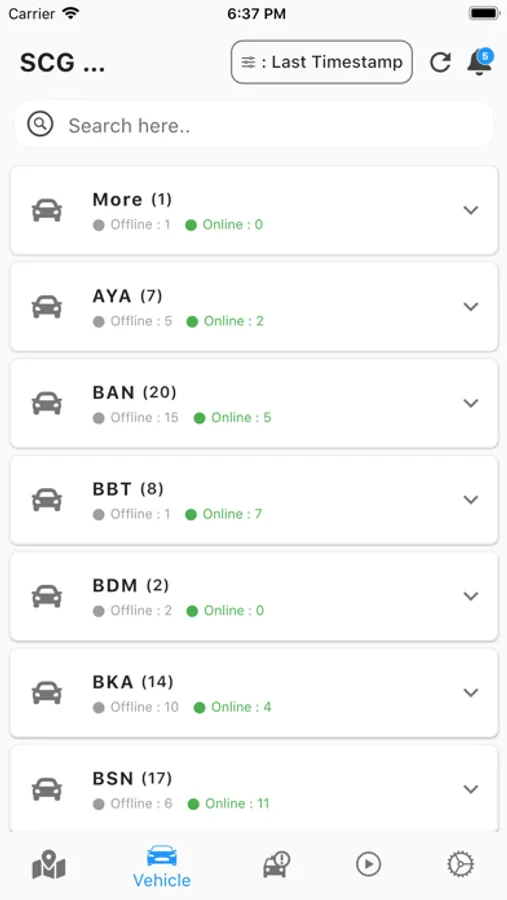 - แสดงรายการยานพาหนะ โดยแสดงตามกลุ่มข้อมูลต่างๆของยานพาหนะ รวมถึงแสดงข้อมูลต่างๆของยานพาหนะ