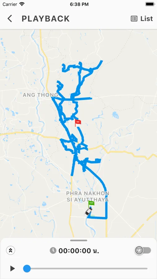 - แสดงข้อมูลการเดินทางย้อนหลังรายคัน ตามเงื่อนไข วัน เวลา ที่ผู้ใช้ระบุ ระบบจะแสดงเส้นทางการเส้นทางการเดินรถตามช่วงเวลาดังกล่าว