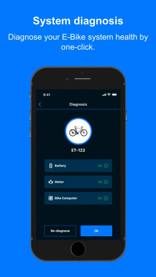 For the E-Bike cyclists, this app also displays some advanced functions by mobile apps connecting with our E-Bike computer, such as remaining battery power, assisting power mode, related cycling data, low battery reminder, E-Bike system diagnostics, and over-the-air device firmware update, etc.