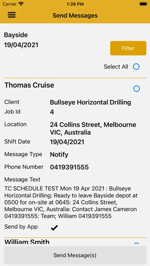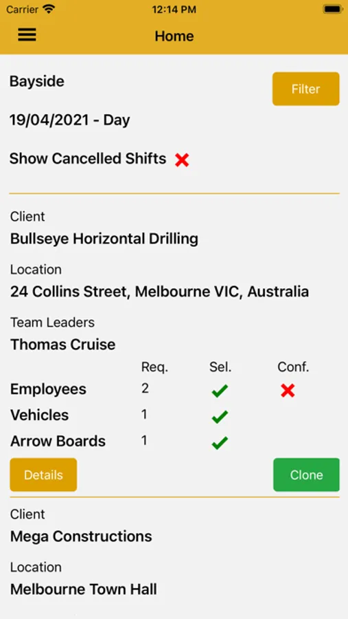 • a list of Shifts, filterable by Depot, Date, Shift Type, Active/Cancelled and Client.