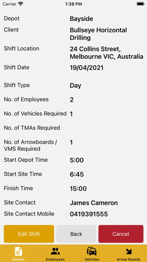 • Shift details with features to add Employees, Vehicles and Arrowboards, and ability to Clone the Shift.
