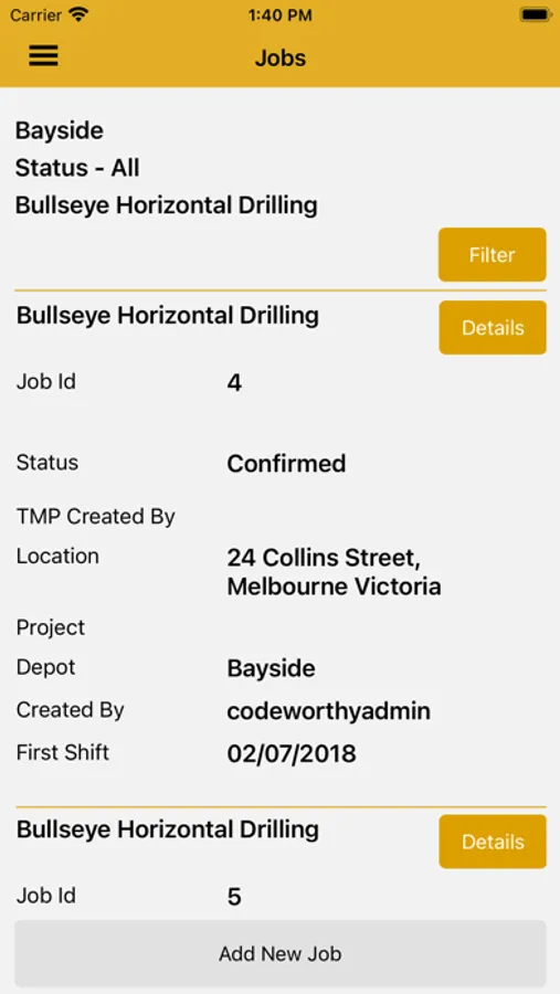 • Job details with features to view and add Tickets, view Documents and view, add and edit Shifts.