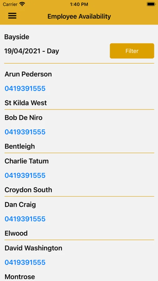 • a list of Employees Available, filterable by Depot, Date, Shift Type and Employee.