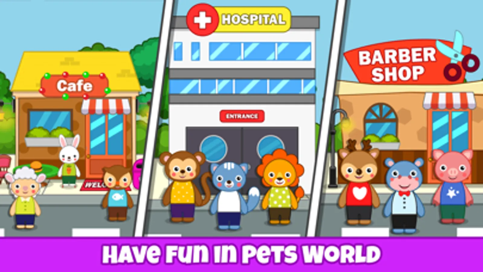 If you have a cute animal or are looking to adopt one soon, Pets Town Life gives you the perfect opportunity to explore it. Start making pet stories with your imagination. Cute animal have everything you need to take care of like my best friend. Lots of interactive activities to perform and have fun adventure. You can customize their look at the spa with dressing wardrobe. Role play as a barber in town or some fire fighter. Enjoy food & music. Make your very own story with your imaginative skills exploring the life of cute pets in the city. There are many hidden locations for you to invent new story each time you play Pets Town Life.