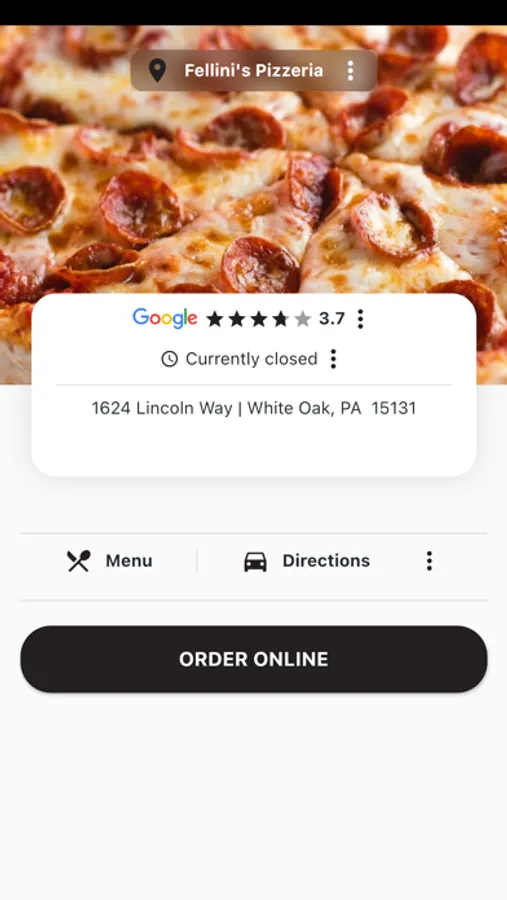 Fellini’s Pizza restaurant app has many different functions. It contains an online ordering link, restaurant images, address and driving directions, store hours, menus, and many other great features.