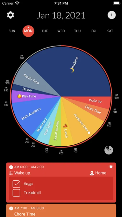 Reminders help to remind you what's scheduled for each part of the day. You could also look at the WeekPlan widget to know the routine of the current day.