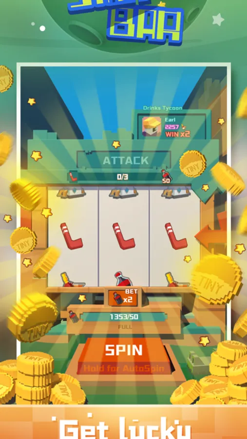 Get lucky and experience the BIG WIN in Star Bar. Spinning roulette will drop fortune and coins. They may be Attacks, Shields, Raids or Gift Boxes. If you turn to coins or alcoholic beverages, you can build a dream Star Bar and stand out in the competition of bar business. Win the shield to protect your Star Bar from other people who want to attack you. Go see if luck is on your side!