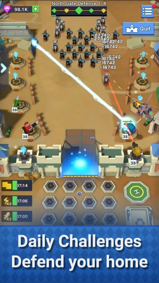 Our homeland is being invaded by evil forces. Do you want to fight and resist or surrender without putting up a fight? Brothers, it's time we join our efforts together to build a defensive line on the high walls against the enemies, and we'll make sure none of them survives our bombardments, be they minions or bosses.