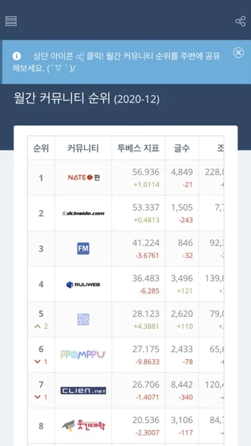 - 실시간 온라인 커뮤니티 순위 제공