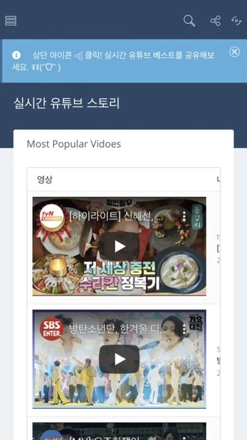 - 실시간 유튜브 베스트 영상 제공