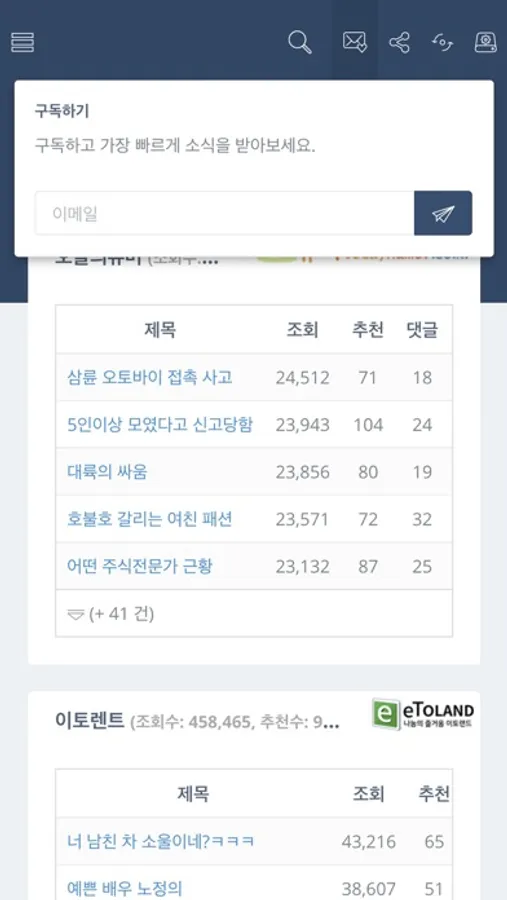 > 실시간 댓글수 베스트 글 Top 5