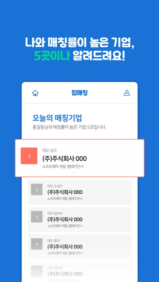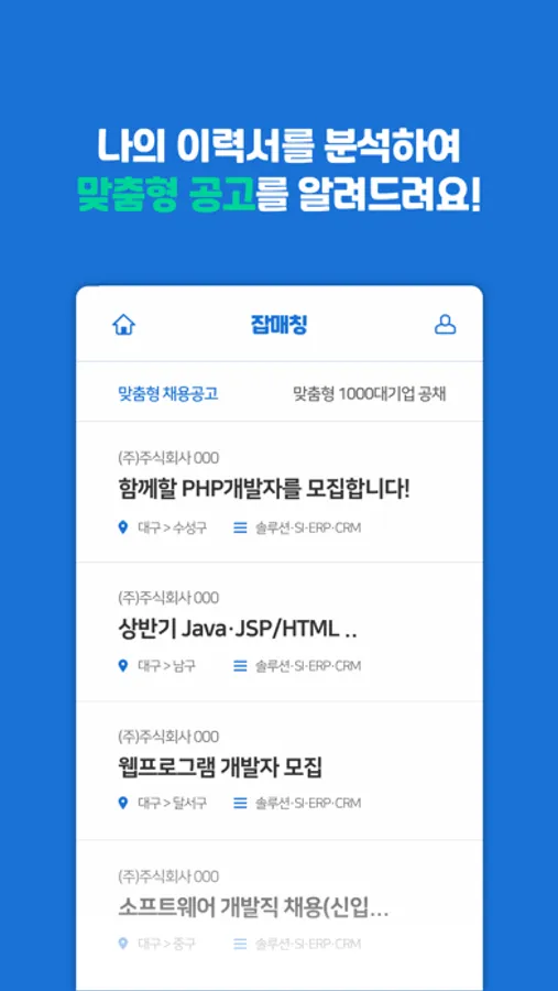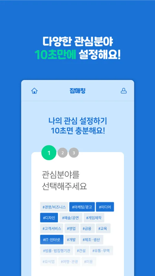선택한 관심분야을 기반으로 매칭정보를 제공해 주어 본인에게 맞는 채용정보가 제공되는 서비스입니다.