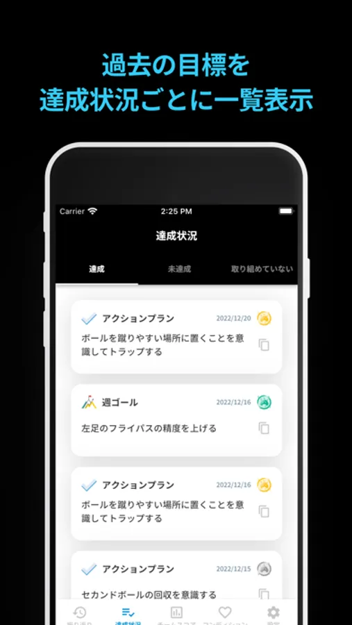 今までチェックインで設定したアクションプランをすべて見返すことができます。
