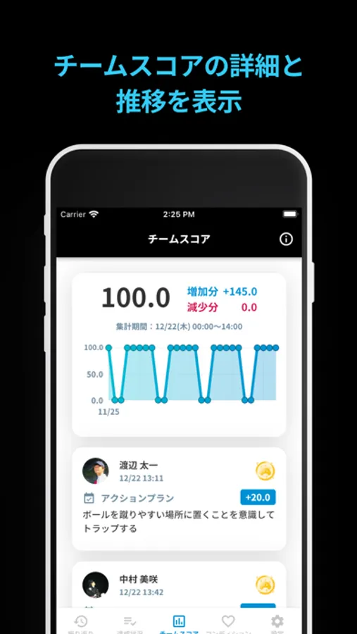 ・各プレイヤーのスコアとアクションプランを一覧表示