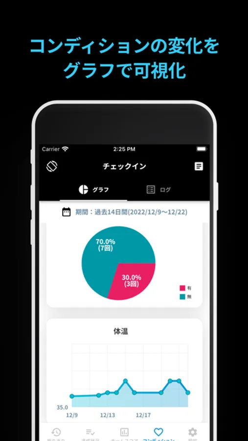 日々のチェックイン・チェックアウトで入力したコンディションチェックの回答を整理して見やすく表示します。