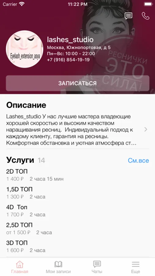 Официальное мобильное приложение студии наращивания ресниц.
