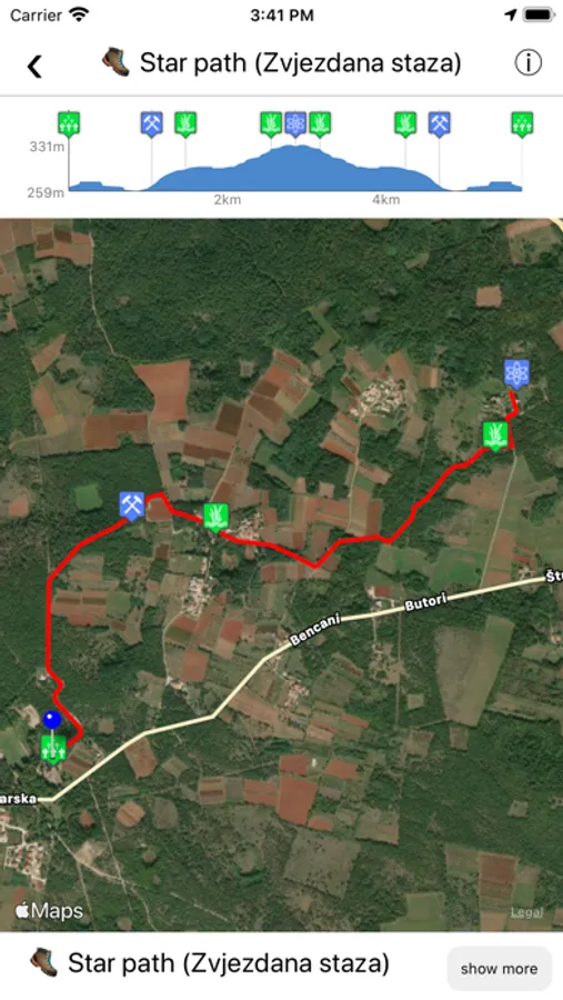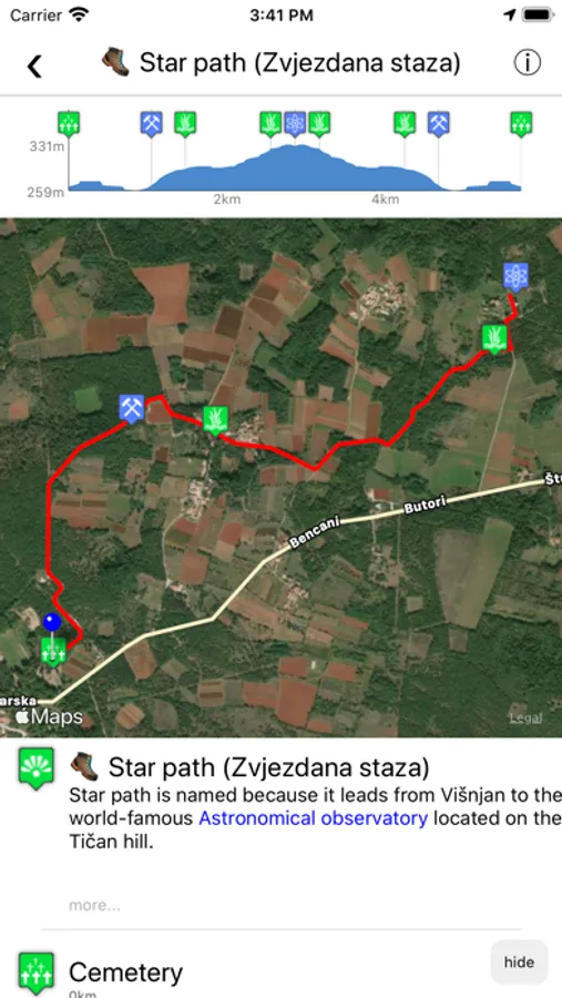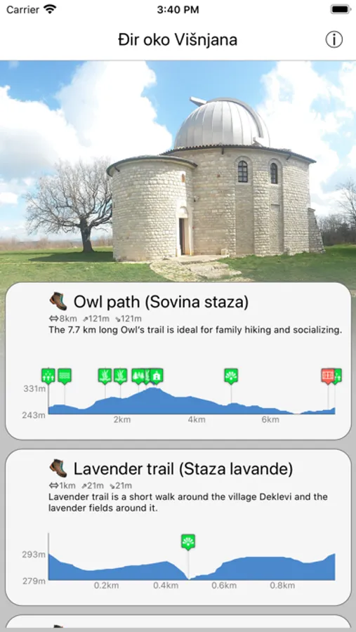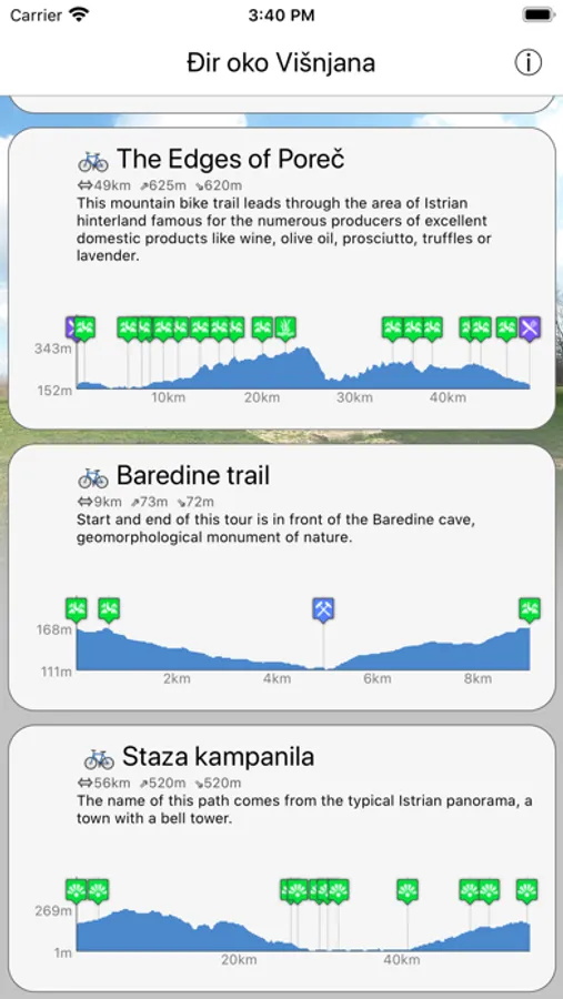This application will help you find interesting places for walking or mountainbiking round Višnjan.