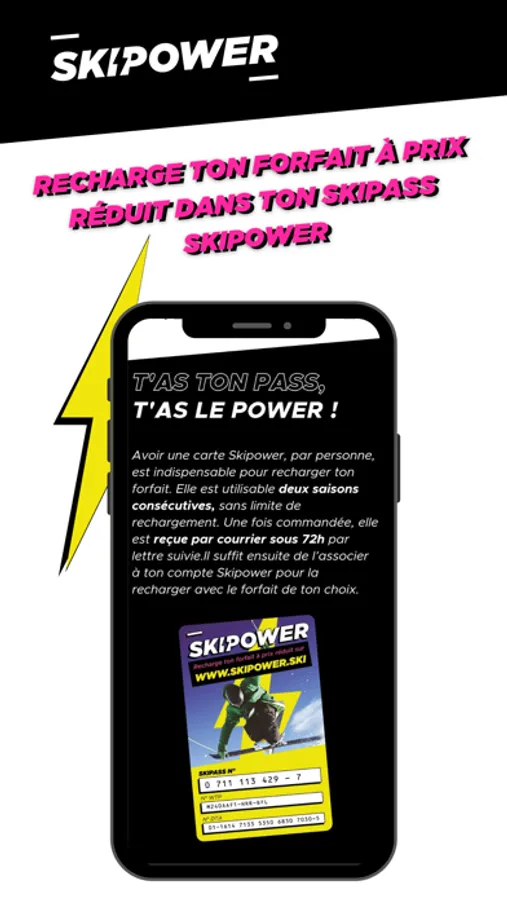 C'est quoi le Skipass Skipower ? C'est une carte-forfait qui te donne accès, une fois rechargée avec ton forfait, aux remontées mécaniques de nos stations partenaires, sans passer par les caisses. Ce qui te permettra de gagner un temps précieux.