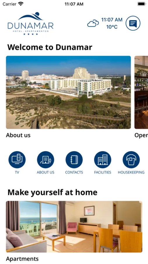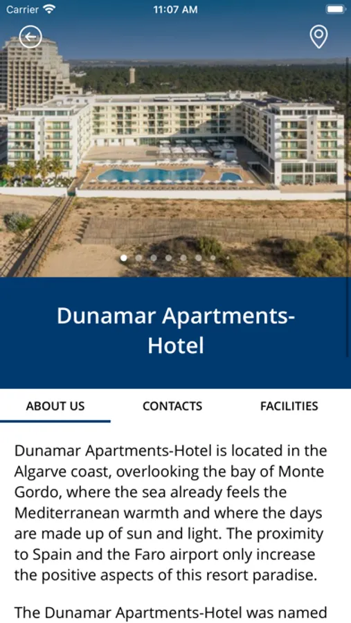 Welcome to the app of the Hotel Apartments Dunamar, through which you will have the opportunity to discover our hotel, with photos, descriptions and contacts. With a privileged location and direct access to the magnificent sandy beach of Montegordo, Hotel Apartments Dunamar is a dream destination, perfect for families in a safe, serene and peaceful environment.