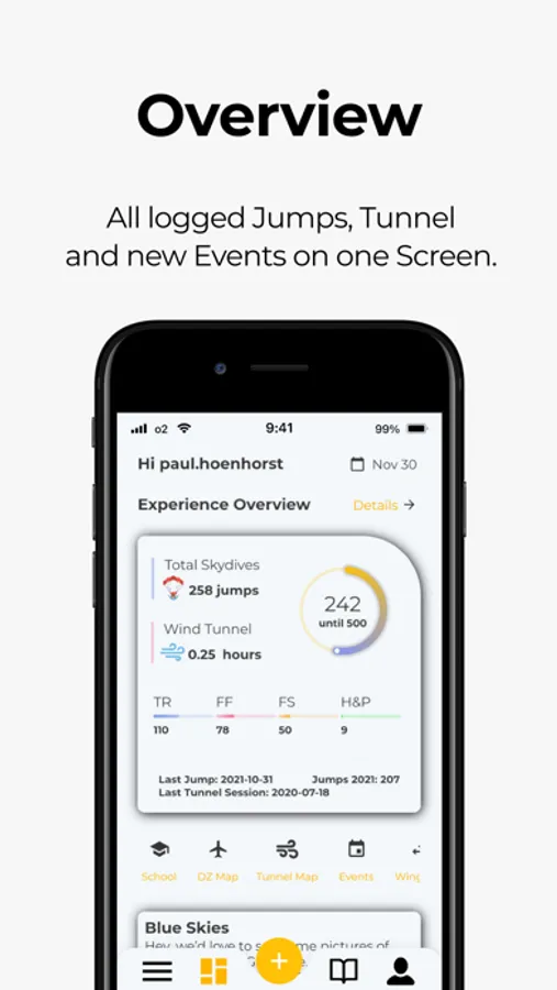 Our aim is to continuously add features in order to bring our skydiving and wind tunnel community closer.