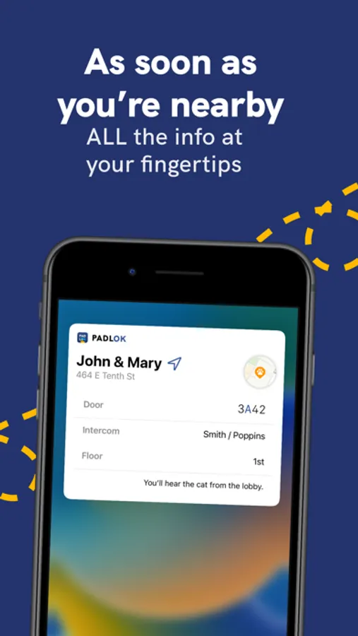 Having a bad time looking for the codes in front of doors? Padlok sends you a notification with all info required when you arrive nearby;