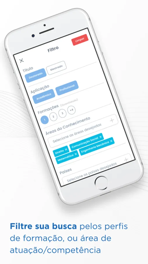 - Filtrar suas buscas pelos perfis de formação, ou área de atuação/competência;