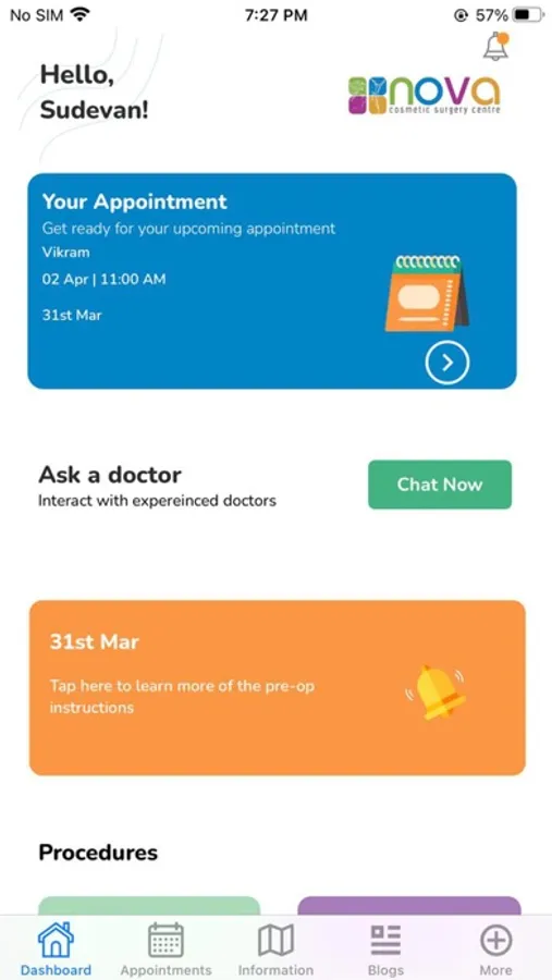 - Dashboard to keep track of your appointments and procedures