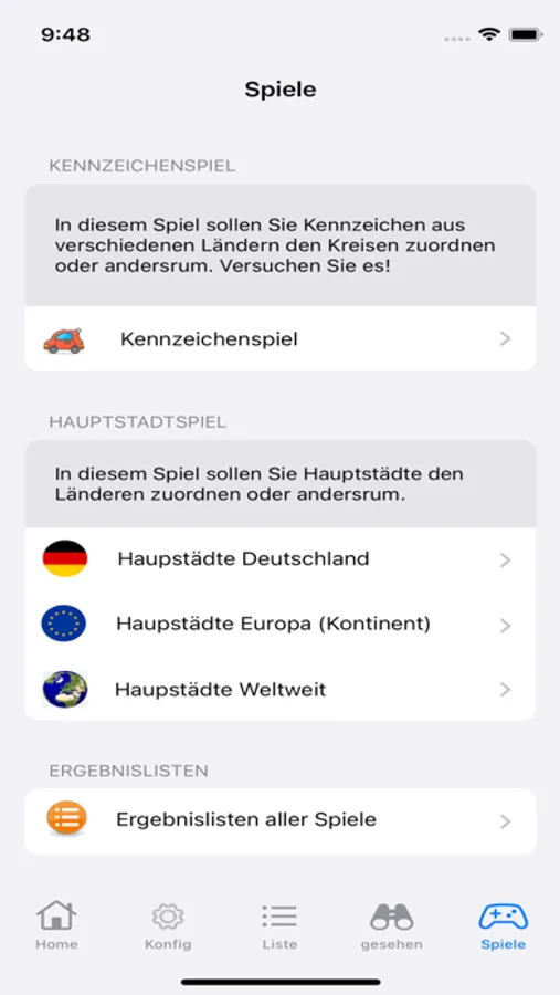 Kenne Sie alle Kennzeichen in Deutschland? Versuchen Sie es in einem kleinen Spiel herauszufinden. Die App funktioniert, bis auf die Karten in der App, ohne Internet.