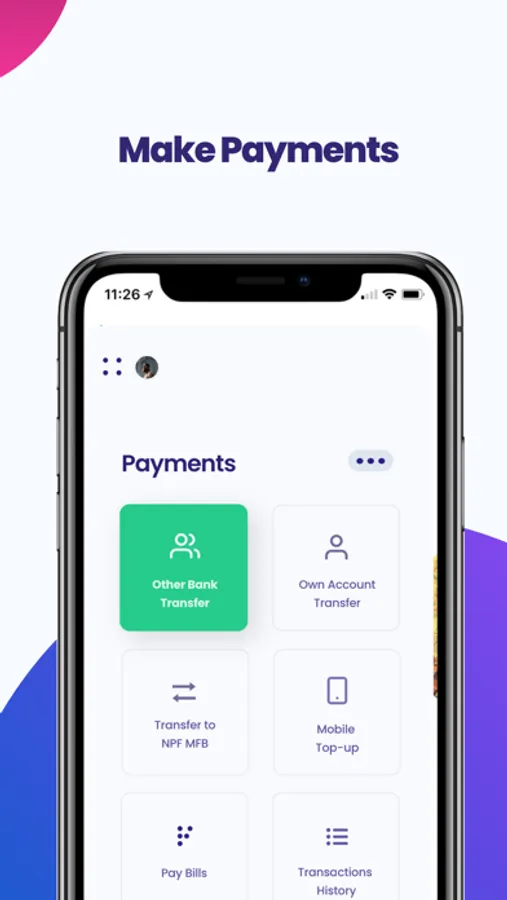 The NPF Microfinance Banking Mobile App allows you to bank on the go. Carryout all banking related activities from the comfort of your mobile phone.